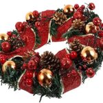 [More] Price: (as of – Details) *-*The Christmas wreath is hand-designed, with golden frosted pine cones, pine long needles, and festive gold, purple and green decorations,