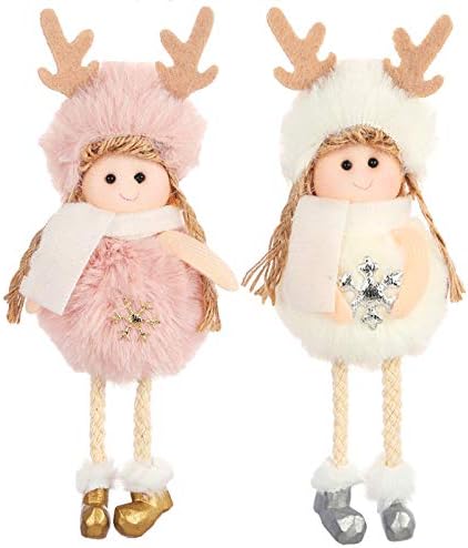 PGYFIS Christmas Decoration 2 Pieces Elk Angel Doll Pendant Tree Hanging Ornaments Christmas Crafts Elves Decorations Pink and White (Angel-Elk)【EXCELLENT MATERIAL】The pink and white silk plush hanging doll window angel for professional decoration is made of environmentally-friendly plush material. It is smooth, healthy, wear-resistant and has good storage and can