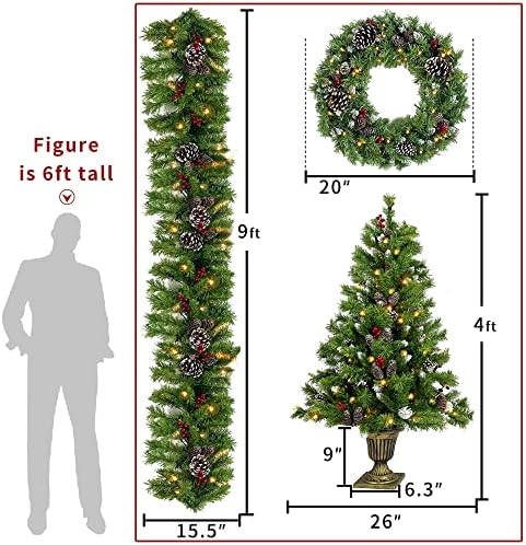 Pre-lit Artificial Christmas 4 Piece Set, Garland + Wreath + Set of 2 Entrance Trees, Festival Home Decoration Product Overview: Branch Fluffing/Shaping Required Includes Stand Easy Set-Up: Stay-Lit Lights Features: Tree Type: Artificial Tip Material: PVC Branch Construction: Hinged Pre Fluffed: No Needle Color: Green Shape: Regular (Full) Foliage Lushness: