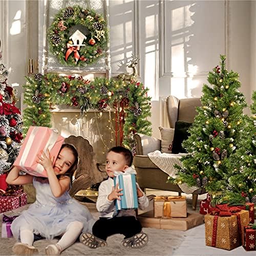 Pre-lit Artificial Christmas 4 Piece Set, Garland + Wreath + Set of 2 Entrance Trees, Festival Home Decoration (Green, 4 Pcs Set)