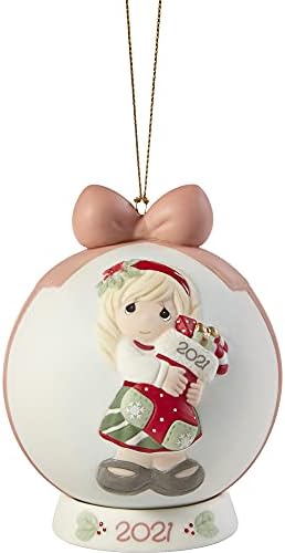 Trees are trimmed, mistletoe is hung, and stockings wait to be filled – the joys of Christmas are all around! How blessed it is that the holidays are a time for this special kind of cheer. This sweet-faced girl on this ball-shaped ornament celebrates a spirit of giving and thankfulness while commemorating the happiness felt throughout the 2021 holiday season. Dressed in her Christmas best, this cutie prepares to share her oversized stocking with someone special. It can be displayed on its dated 2021 base or hung from a branch of a Christmas tree. This merry ornament makes a distinctive Christmas gift for just about anyone. It also makes a unique housewarming present or holiday hostess gift. Measuring approximately 4”H, this darling dated ornament is carefully sculpted of fine bisque porcelain and is expertly hand-painted. For more than 40 years, Precious Moments has been devoted to making the world a kinder place by helping people share love. A timeless brand, Precious Moments helps you celebrate everyday moments and commemorate special occasions with hand-painted porcelain figurines and ornaments as well as contemporary kitchenware, home décor, baby gifts, and more. A unique inspirational message lies at the heart of every Precious Moments product, thoughtfully designed so you can turn your special moments into memories that last a lifetime.