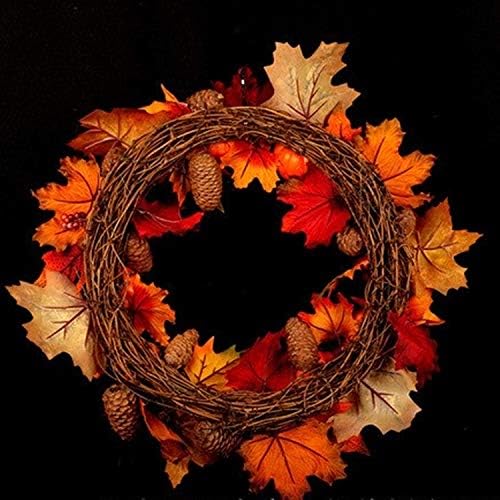 Perfect for Costume Parties, Carnival, Christmas, Easter, New Years Eve Party, Halloween, etc1. Maple leaf wreath heart-shaped design, unique personality2. Made of simulated pumpkin and pine cones3. Each rattan is treated with anti-corrosion and mildew, and has a long service life.4. Effectively create a festive atmosphere5. Size: 60cm6. Weight: about