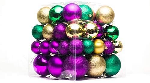 Queens of Christmas WL-ORN-62PK-GPG-62PC Green Purple and Gold 62 Piece Ball Ornament Set