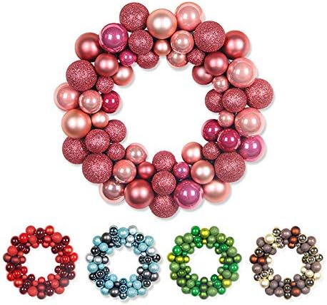 redcolourful Christmas Ball Wreath Door Wall Ornament Garland for Home Hotel Party Wedding Decoration Pink