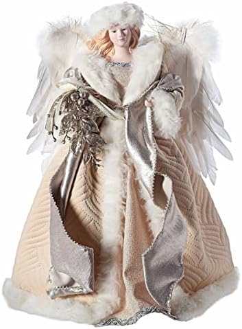 Roman 16″ Beige and Gold Angel Christmas Tree Topper, Unlit