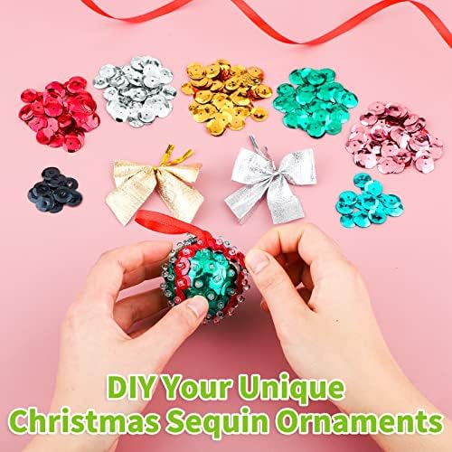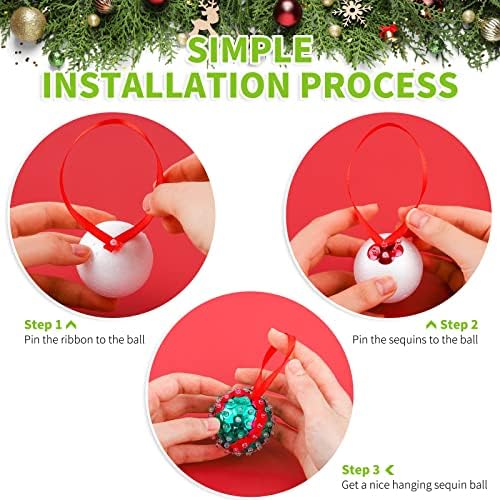 Complete sequin ornament kit: you will receive 10 foam balls, 8 bags sequins, 1 bag plastic pins, 24 small bowknots, and 1 roll ribbon, with abundant accessories, you can make various colors of sequin hanging ornaments, satisfying your decorations needs of the Christmas