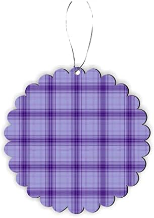 Sam Sandor – Lavender Purple Plaid Checks – Round Scallop Car Interior Rearview Mirror Hanging Decor – Christmas Tree Ornament
