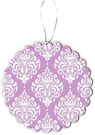 Sam Sandor – Lavender Seamless Damask – Round Scallop Car Interior Rearview Mirror Hanging Decor – Christmas Tree Ornament