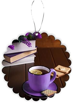 Sam Sandor – Lemon Tea Lavender with Books – Round Scallop Car Interior Rearview Mirror Hanging Decor – Christmas Tree Ornament