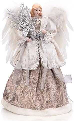 SANNO 15.7″ Angel Christmas Tree Topper Angel Figurines with White Pearl Wings Angel Figure Tree Topper Ornament for Party Home Mall Xmas Tree Favor