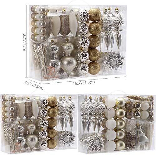 Sea Team 91 Pieces of Assorted Shatterproof Christmas Ball Ornaments Set Seasonal Decorative Hanging Ornament Set with Reusable Hand-held Gift Package for Holiday Xmas Tree Decorations, Gold & White
