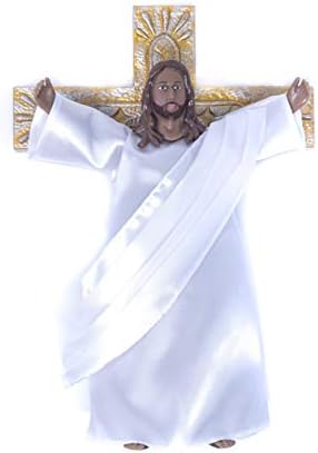 ✝️ DETAILED 3D FIGURINE – The 8.5×4.25×12-inch image of Jesus and the cross behind it are made of a sturdy and durable plastic material. It is large enough for holiday trees 5 feet and above.
