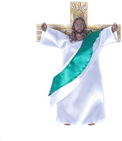 ✝️ REMOVEABLE SASHES – Each set comes with 4 interchangeable sashes in purple, red, yellow and green. The white robe and sash of our decorative Jesus tree topper is made of polyester fabric.