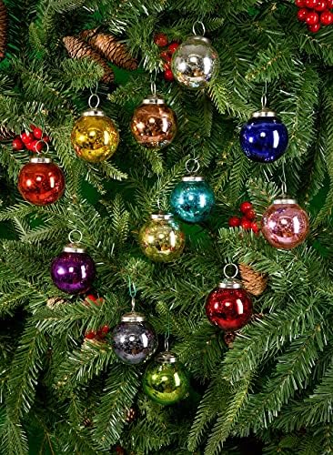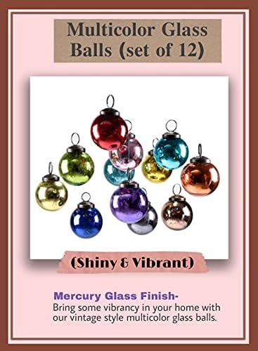 Serene Spaces Living Set of 12 Multicolor Glass Balls, Ornaments for Holiday Décor, Measures 2″ Diameter