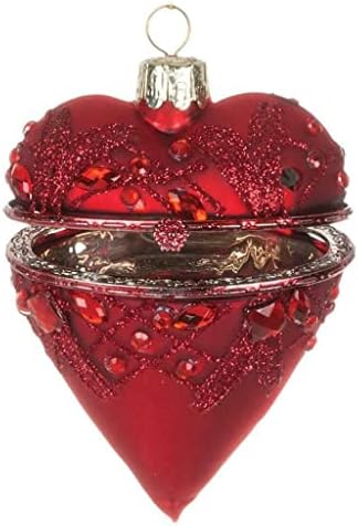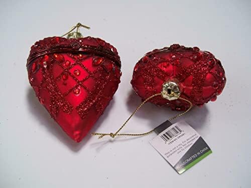 Set 6 4″ RED Mercury Glass Hinged Heart Box Christmas ~ Valentine Ornaments Home and Garden