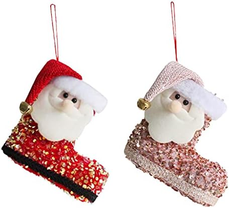 SHYPT 2pcs/set 3D Christmas Sock Decor Toy Sequined Boots Trees Hanging Ornaments Home Party Festival Pendant (Color : A, Size : 5.91 X 6.3 X 3.54in)