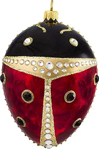 SUPER BINGO The Decor That is Adored Red Ladybug Jeweled Egg Polish Glass Christmas Tree Ornament Poland – for Christmas and not only