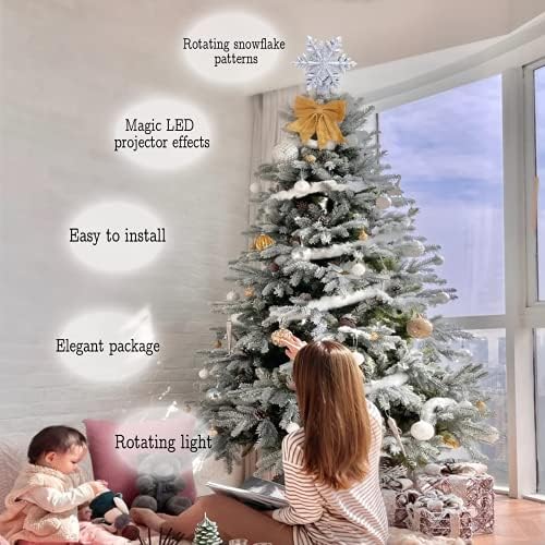 Product Description 【Unique Xmas Snowflake Tree Topper】:Shiny snowflake decorations adorn your Christmas tree, more in line with the theme of Christmas snow, full of festive atmosphere, built-in snowflake shape projection, so that you can see the rotating snowflakes indoors【Christmas Decoration Snowflake/Rotating Snowflake Light】: Even in the daytime, it can add