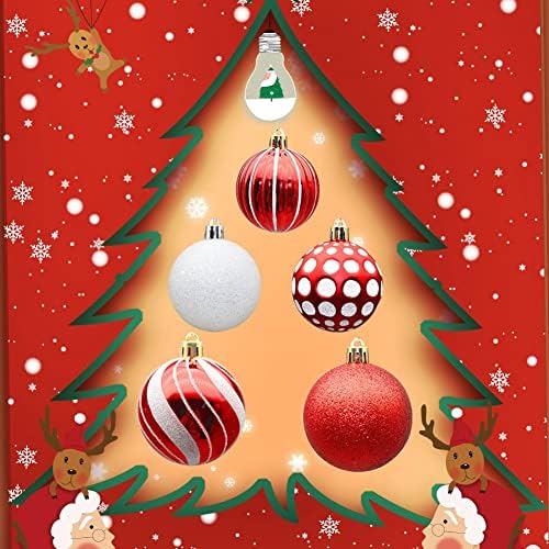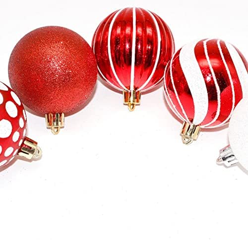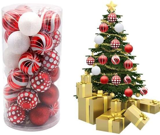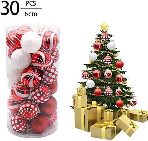 Suroene colour: red + whiteMaterial: plastic + electroplatingSize: Christmas balls 6cm/2.36 inches Package Contents:1 set x christmas tree ornaments Only the above package content, other products are not included.Note: Light reflection and different displays may cause the color of the item in the picture a little different from the real