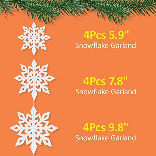There are 12 pieces white 3D Christmas hanging snowflakes inside that has three different sizes including 4 pcs x 9.8 inches, 4 pcs x 7.8 inches and 4 pcs x 5.9 inches. It could bring you the strong and happy winter holiday party atmosphere.