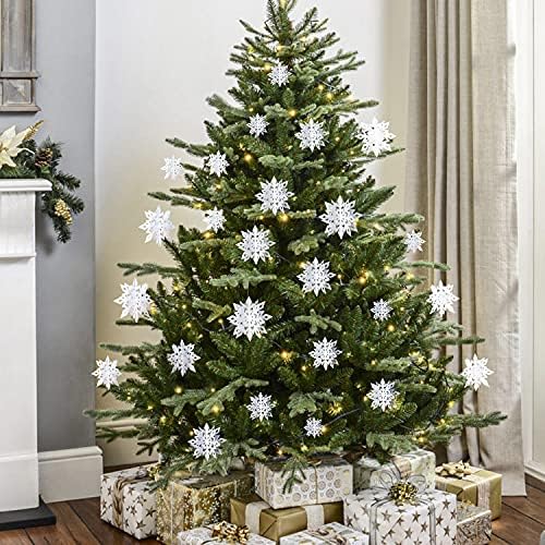SWORDDY Christmas 3D Snowflake Hanging Decorations, 12pcs Winter Wonderland Silver White Glittery Paper Snowflakes for Christmas Trees & Window Decoration, Xmas New Year Party Home Decor Accessories