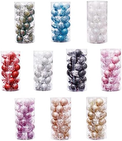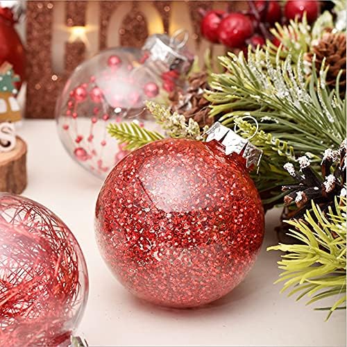 Takefuns 30PACKS Christmas Ball Kit Xmas Tree Hanging Baubles Glitter Sequin Christmas Pine Tree Ornament 7CM 10 Colors Pendant Clear Plastic Ball Hanger DIY Craft Holidat Wedding Decor