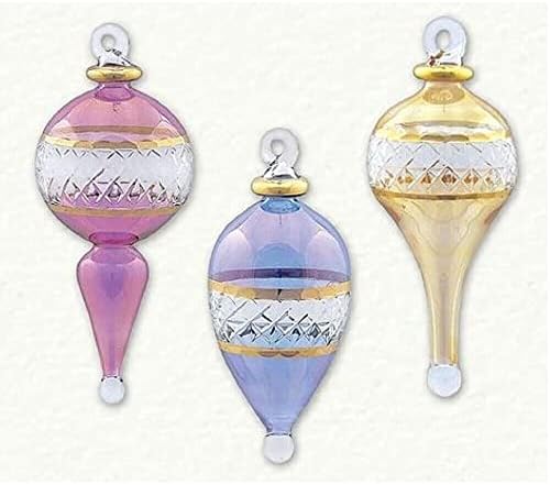 The Decor That is Adored Yellow Blue and Pink Gold Etched Egyptian Glass Christmas Tree Ornament Set of 3 – for Christmas and not only