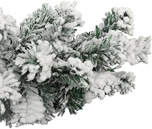 The beautiful garland, featuring flocked white snow, is made of PVC material, making it suitable for both indoor and outdoor use.