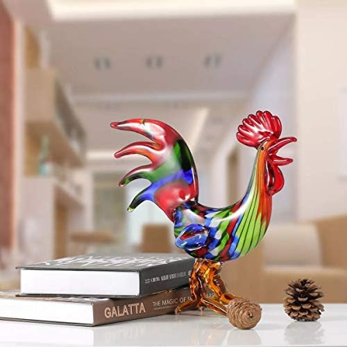 TWDYC Colorful Rooster Glass Figurine Home Decor Animal Ornament Favor Gift Glass Craft Decoration for Home Office