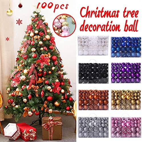 Usahuo Christmas Balls Ornaments for Xmas Tree – 100 Pcs Plastic Shatterproof Colored and Glitter Hanging Balls for Christmas Tree Home Party Decoration