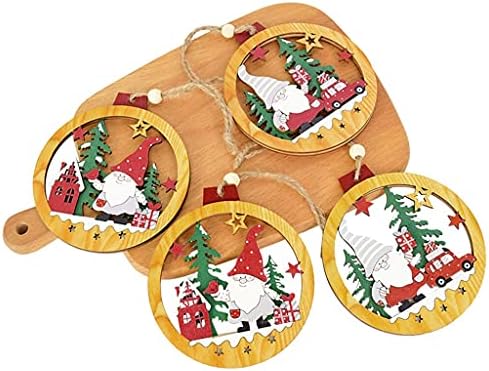 UXZDX 2pcs/ Set Christmas Wooden Pendant Christmas Tree Hanging Ornament Round Wooden Circle Santa Claus (Color : A, Size Shows)