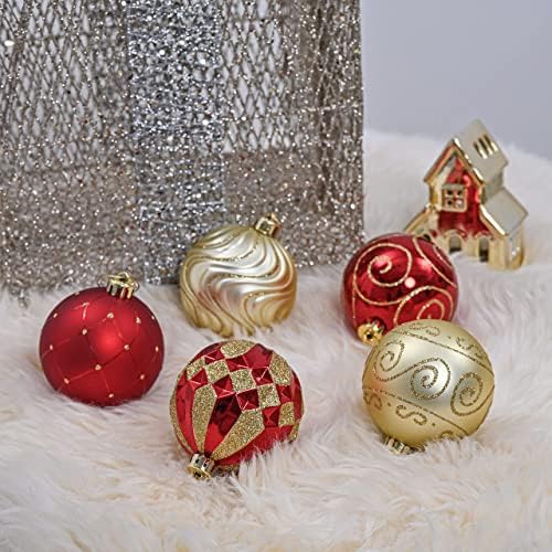 Christmas Decor Value Bundle | Bundle includes Luxury Red &Gold 16ct 80mm Christmas Ball and 1pcs Gold Angel Christmas Tree TopperLuxury Red &Gold Theme: The design is inspired by the luxury modern home style. when the baroque luxury red and gold ball ornaments are integrated into your family, they can