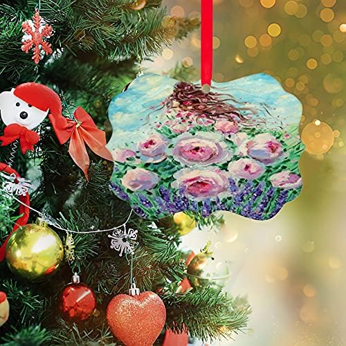 VEHFA Chirstmas Hanging Ornament Beautiful Summer Roses Lavender Keepsake Acrylic Souvenir Present for Xmas Tree Holiday Party New Year