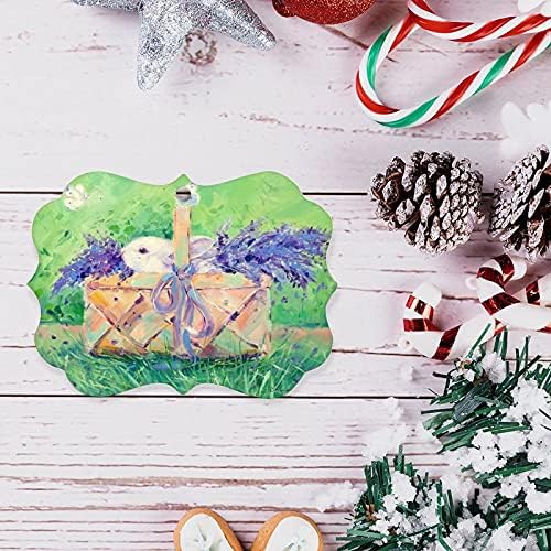 VEHFA Chirstmas Hanging Ornament Bunny in A Basket Rabbit Lavender Keepsake Acrylic Souvenir Present for Xmas Tree Holiday Party New Year