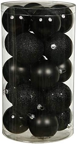 1.6″ (40MM) Jet Black 4-Finish Plastic Ornament Set of 96 per Box. Shatterproof, Matte/Shiny/Sequin/Glitter Finishes, Strings, Secured Caps. ShatterproofSeamless PlasticSecured Cap with String