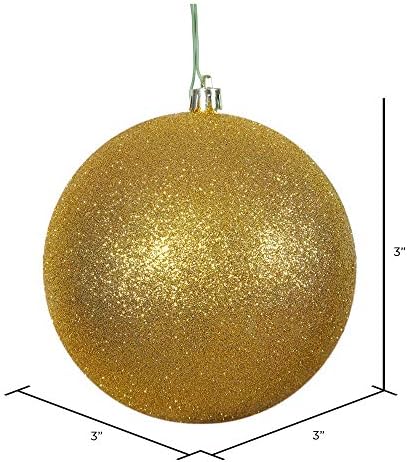 3Antique gold glitter ball ornaments. Shatterproof and UV resistant. Pre-drilled cap secured with 6of green floral wire. 12 per bag. Comes with a 1 year seasonal warranty.. Vickerman company is an importer and wholesaler of quality seasonal decorations including traditional and realistic artificial Christmas trees, wreaths and garlands. In addition