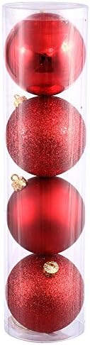 12″ – Red – Shiny – Matte – Glitter – Sequin – Ball – Shatterproof | Vickerman Christmas Tree Ornament (4 pack) ShatterproofColor/Finish: RedPack Size: 4