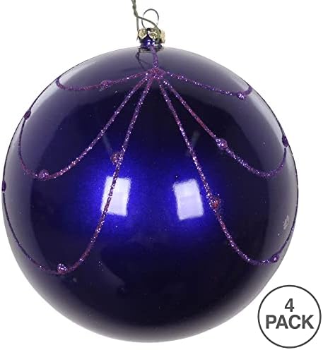 Vickerman 4.75″ Christmas Ornament Curtain Pattern Ball, Purple Candy Finish with Glitter Curtain Accent, Shatterproof Plastic, Holiday Christmas Tree Decoration, 4 Pack