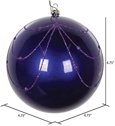 Vickerman 4.75″ Purple Candy Glitter Curtain Ball Christmas Ornament 4 Pack. This ornament is made from shatterproof plastic and features a rich candy finish. Shatterproof ornaments are kid and pet friendly and safe for the entire family to help hang on the tree. Sturdy design featuring a drilled and wired