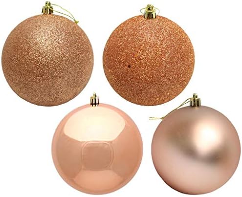 12″ – Rose Gold – 4 Finish – Matte / Shiny / Sequin / Glitter – Ball – Shatterproof – Secured Caps – UV Resistant | Vickerman Christmas Tree Ornament (set of 4)