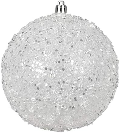 6″ – White – Glitter – Hail – Ball | Vickerman Christmas Tree Ornament (4 pack) ShatterproofColor/Finish: WhitePack Size: 4