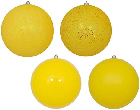 12″ – Yellow – 4 Finish – Ball | Vickerman Christmas Ornament (4 Pack) ShatterproofColor/Finish: YellowPack Size: 4