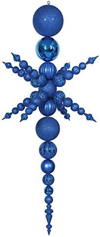 Vickerman 76″ Matte, Shiny, and Glitter Snowflake Finial Ornament, Shatterproof plastic, Holiday Christmas Tree Decoration, Blue