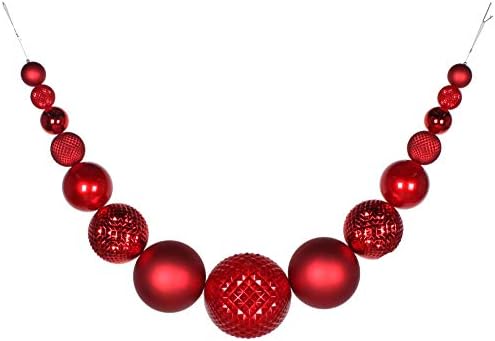 Vickerman 76″ Red Durian Ornament Swag. This large ornament is the perfect addition to any holiday decorating project. This item includes a combination of textured and smooth ornaments with candy and matte finishes. It features wire loops for easy hanging.