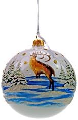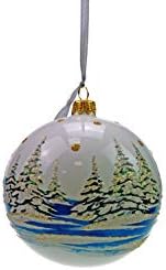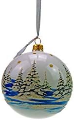 Victoria Bella 4″ Christmas Tree Glass Ball, Christmas Motives on a White Background Hand-Painted by Skilled Artisian, Set of Christmas Ornaments in a Wooden Box, Set of 6