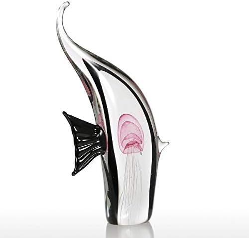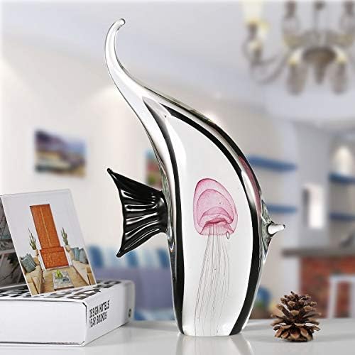 Description: This glass fish ornament has very special look: inside the transparent fish body there is a pink jellyfish swimming, leaving people a delight and vivid feeling. The sculpture is delicately made by the professional craftsman. Each craft experienced more than 1000 high temperature baking, modeling and coloring process. It