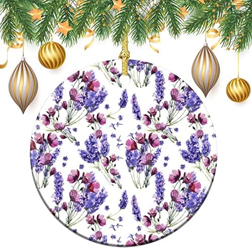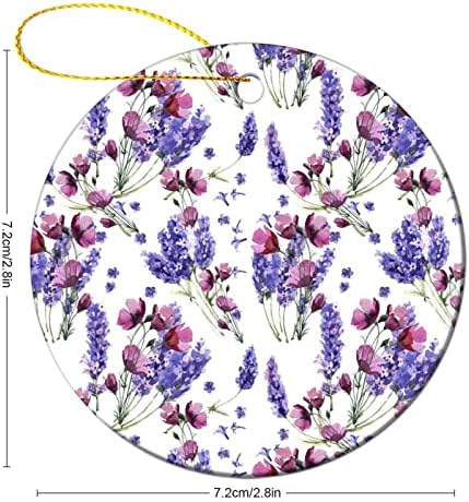 Wildflower Lavender Flower Round Ceramic Christmas Hanging Pendant Print Souvenir Ornaments for Xmas Tree Decoration