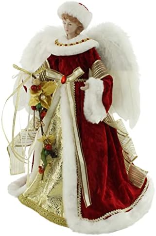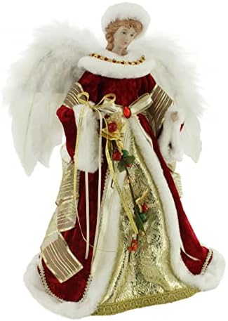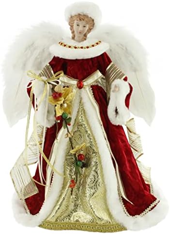 Windy Hill Collection 16″ Inch Standing Red Floral Angel Christmas Tree Topper or Table Top 416570