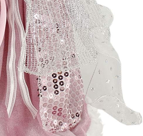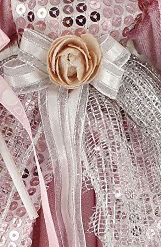 Serene and peaceful, this Pink Grace Ethnic Angel is delighting everyone with her elegance and grace. Her pink gown has sparkling pink sequins on top and white faux fur trim on the bottom, plus a matching sash. And there are billowy layers of silver and white lace sprinkled with silver