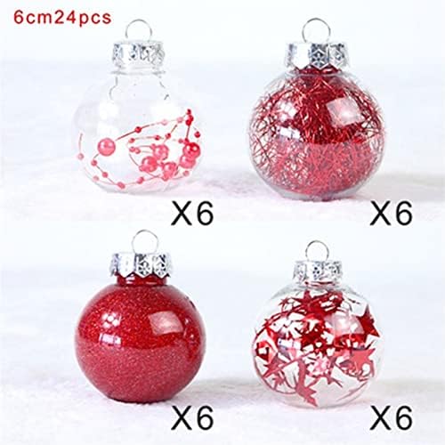 Material:PlasticSize:6cm/2.36 inchPackage include:24 pieces,6 pieces per styleOccasion:Christmas/New Year/XmasSPARKLING & EXQUISITE CHRISTMAS ORNAMENTS These ornaments feature sparkling decorations with clear glaze base They will be perfect for decorating your home and become part of your holiday tradition.SHATTERPROOF CHRISTMAS ORNAMENTS These ornaments are made of durable and ecofriendly plastic to provide excellent